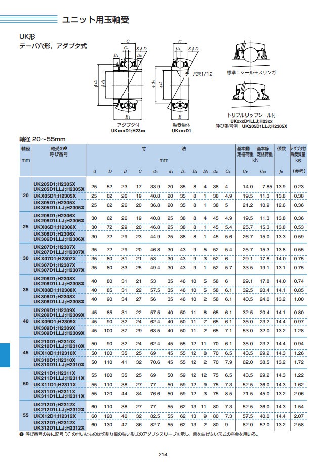 UK210D1 ベアリング・ユニット用玉軸受・テーパ穴 NTN