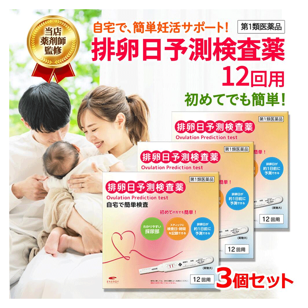 【送料無料 3個セット】エナジー排卵日予測検査薬 12回分×3個 ■ 要メール確認 第1類医薬品【4902510380053】