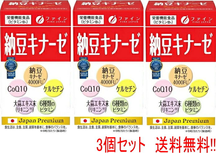 【3個セット・送料無料】【ファイン】納豆キナーゼ ナットウキナーゼ 30日分(240粒)×3