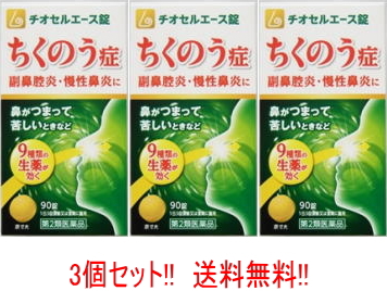 【第2類医薬品】【送料無料!! 3個セット!!】 原沢製薬 チオセルエース錠 90錠×3個