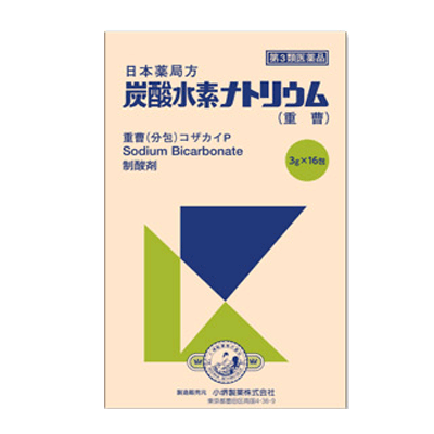 | 成分 | 本品 1 包(3g)中、日本薬局方 炭酸水素ナトリウムを 3g含有します。 |