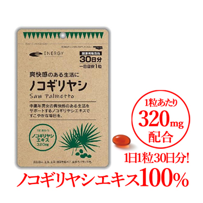 ノコギリヤシ 1粒あたり320mg エナジー 30粒入(1日1粒 1ヶ月分) ソフトカプセル サプリメント【期限2026年2月】