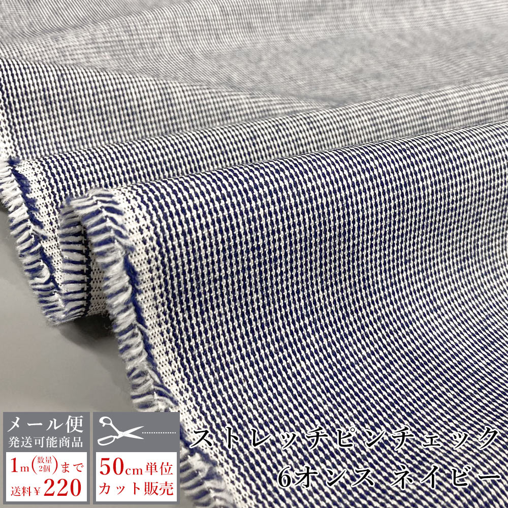 チェック 生地 薄手 コットン 6オンス ネイビー ピンチェック パンツ シャツ スカート シワになりにくい 商用利用可能 日本製 岡山 でに丸