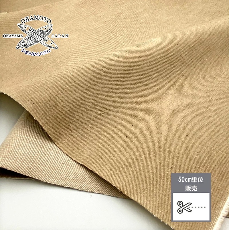 デニム生地 岡山デニム 左綾サルファーカラーロープ染めデニム ベージュ 10.5オンス 綿 コットン 100% デニム生地 岡山県産 ジーンズ