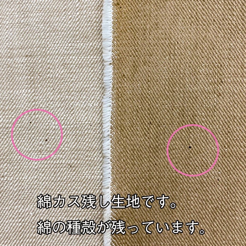 綿の種殻が残っているナチュラルな雰囲気の綿カス残し生地です。