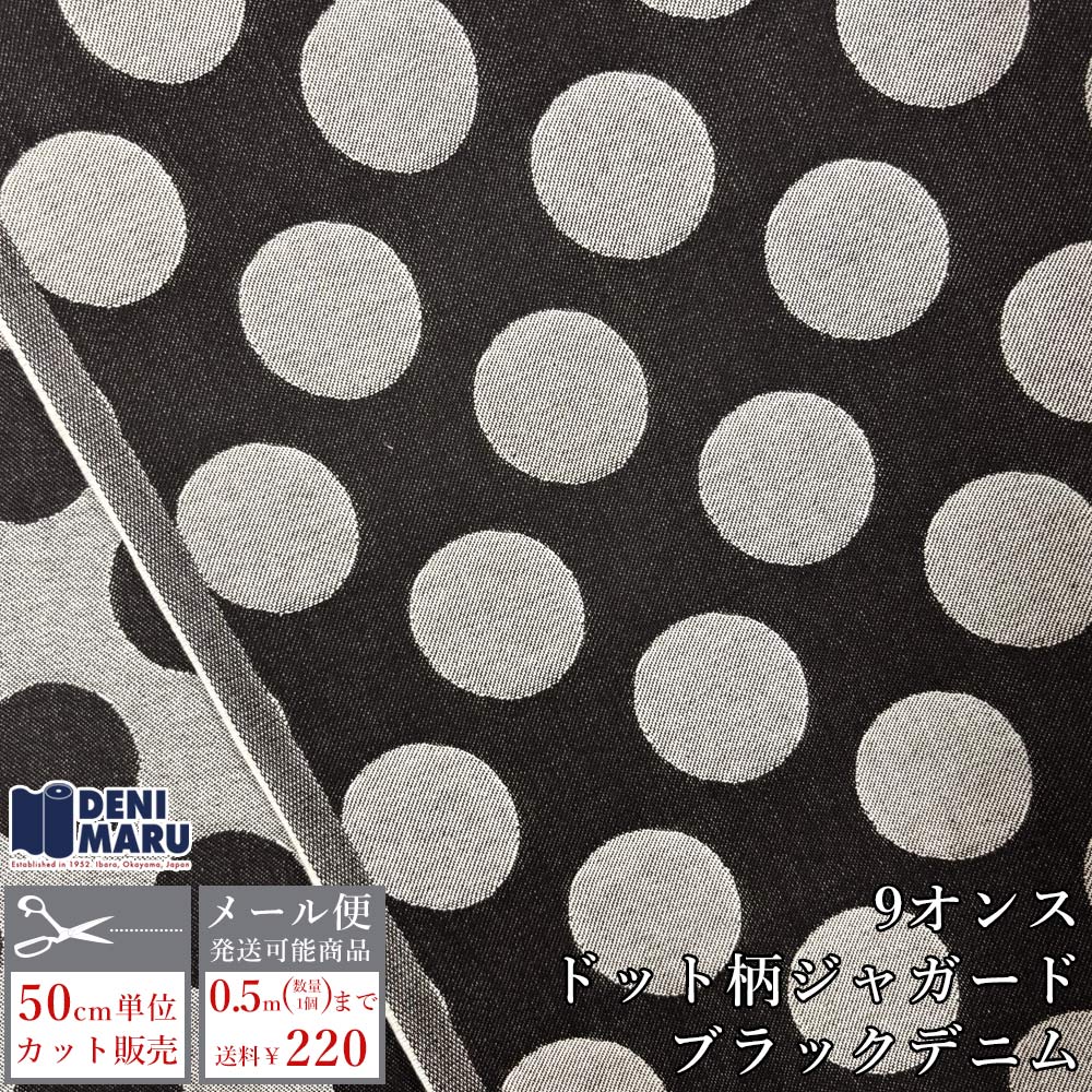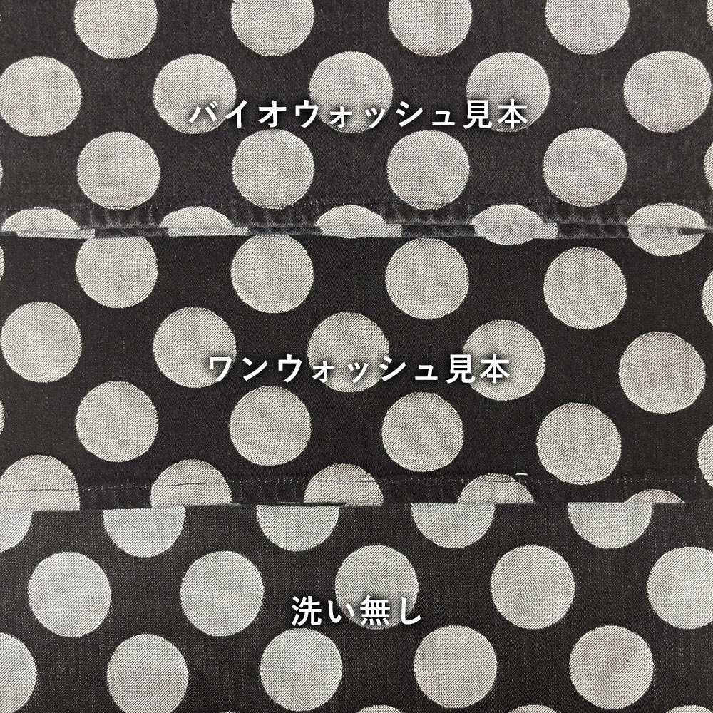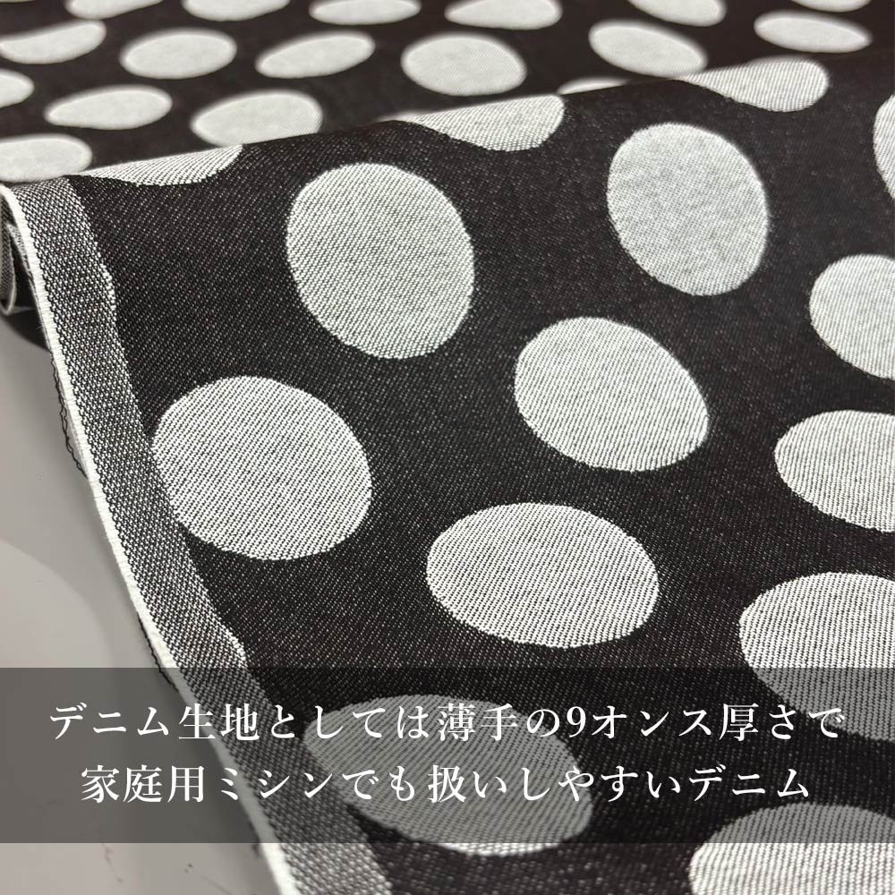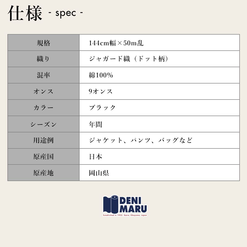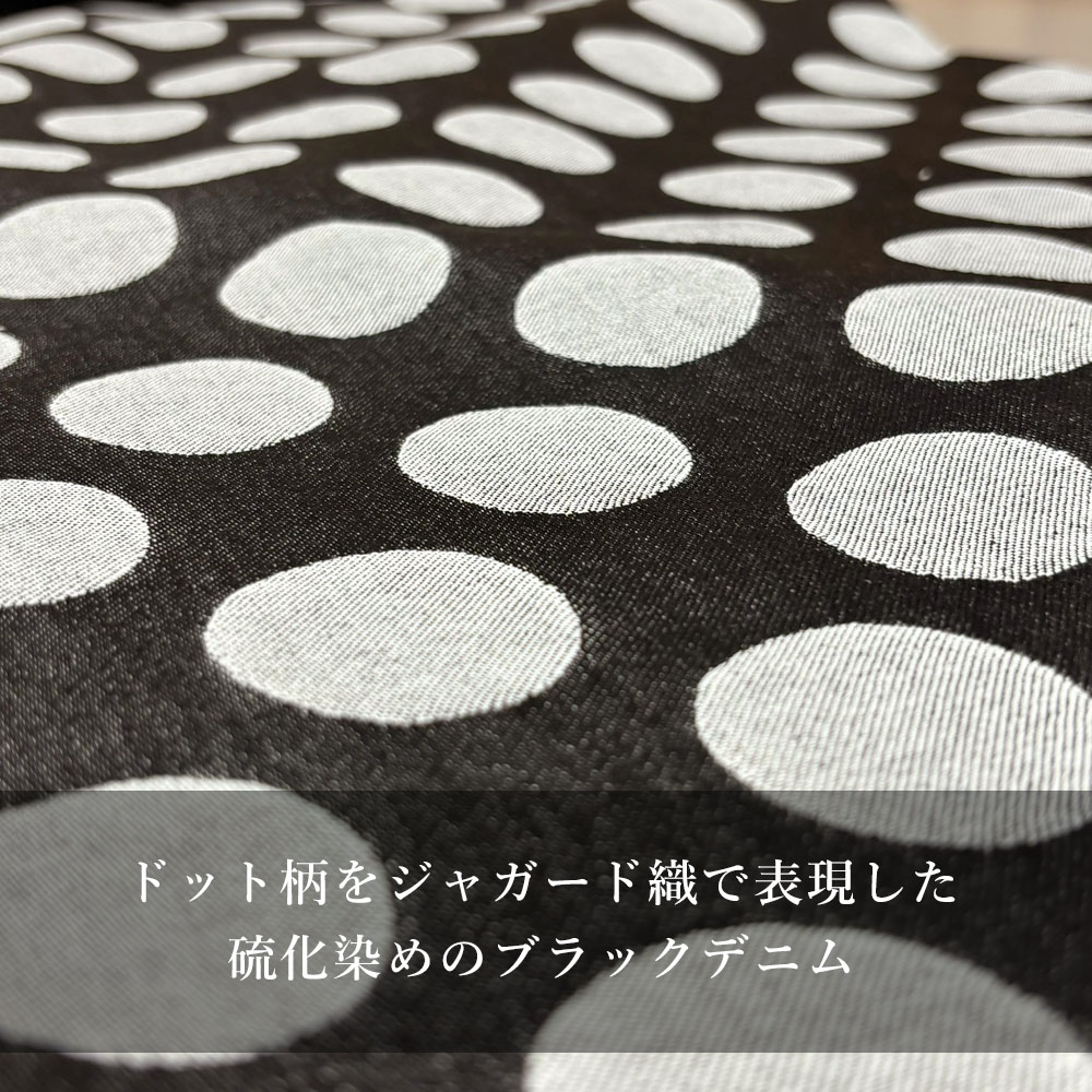 ドット柄をジャガード織で表現したブラックデニム生地。
