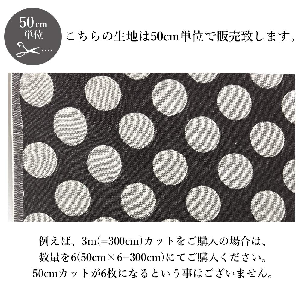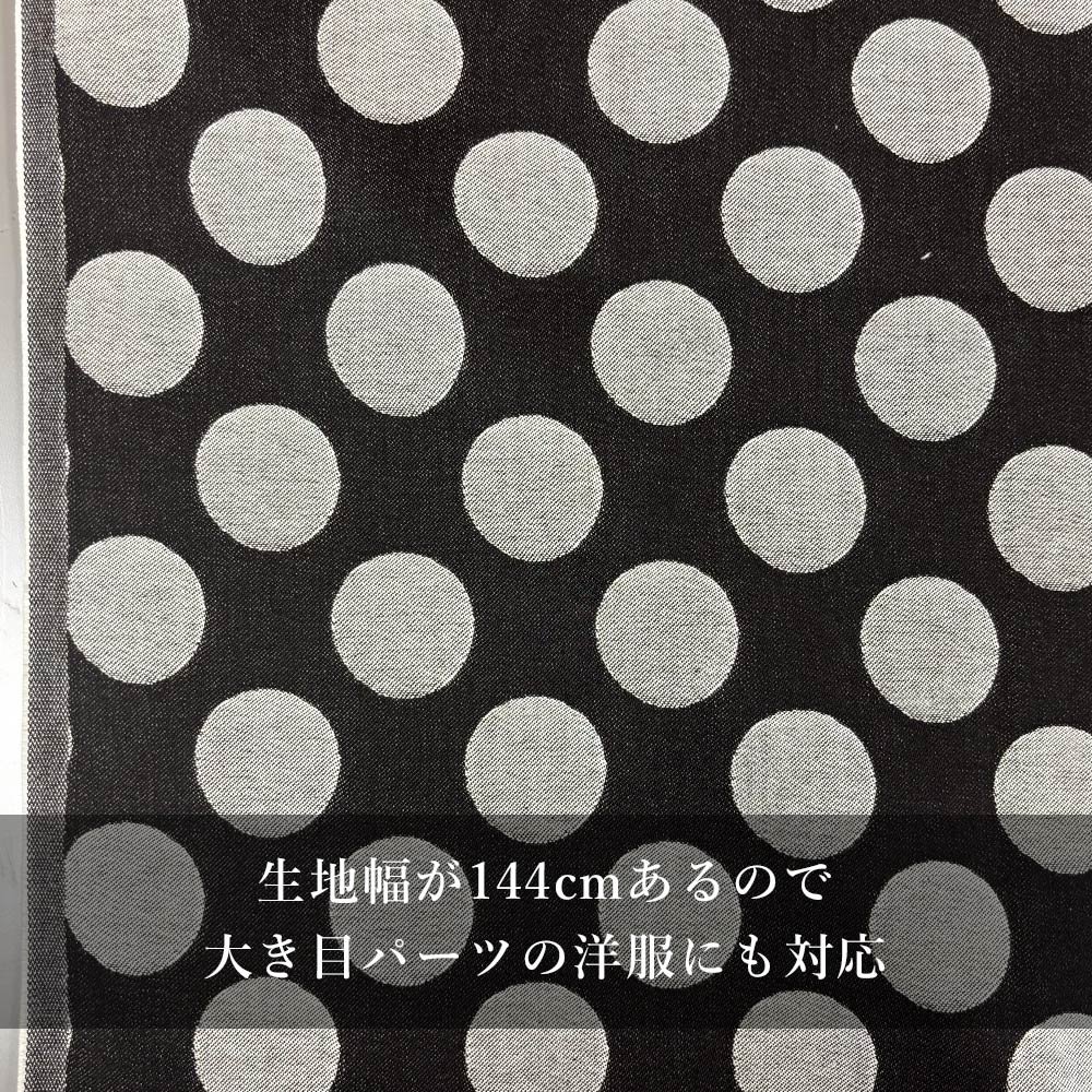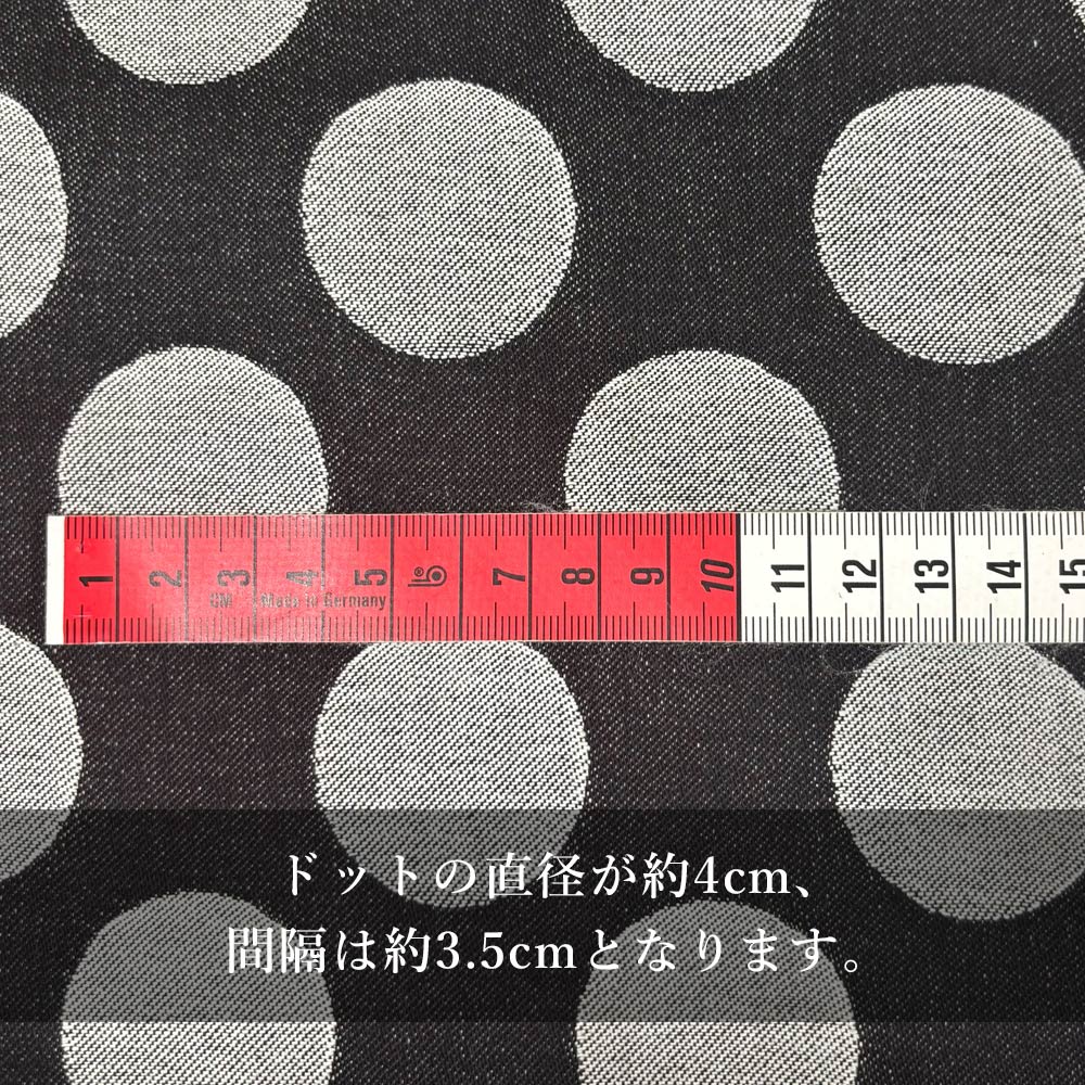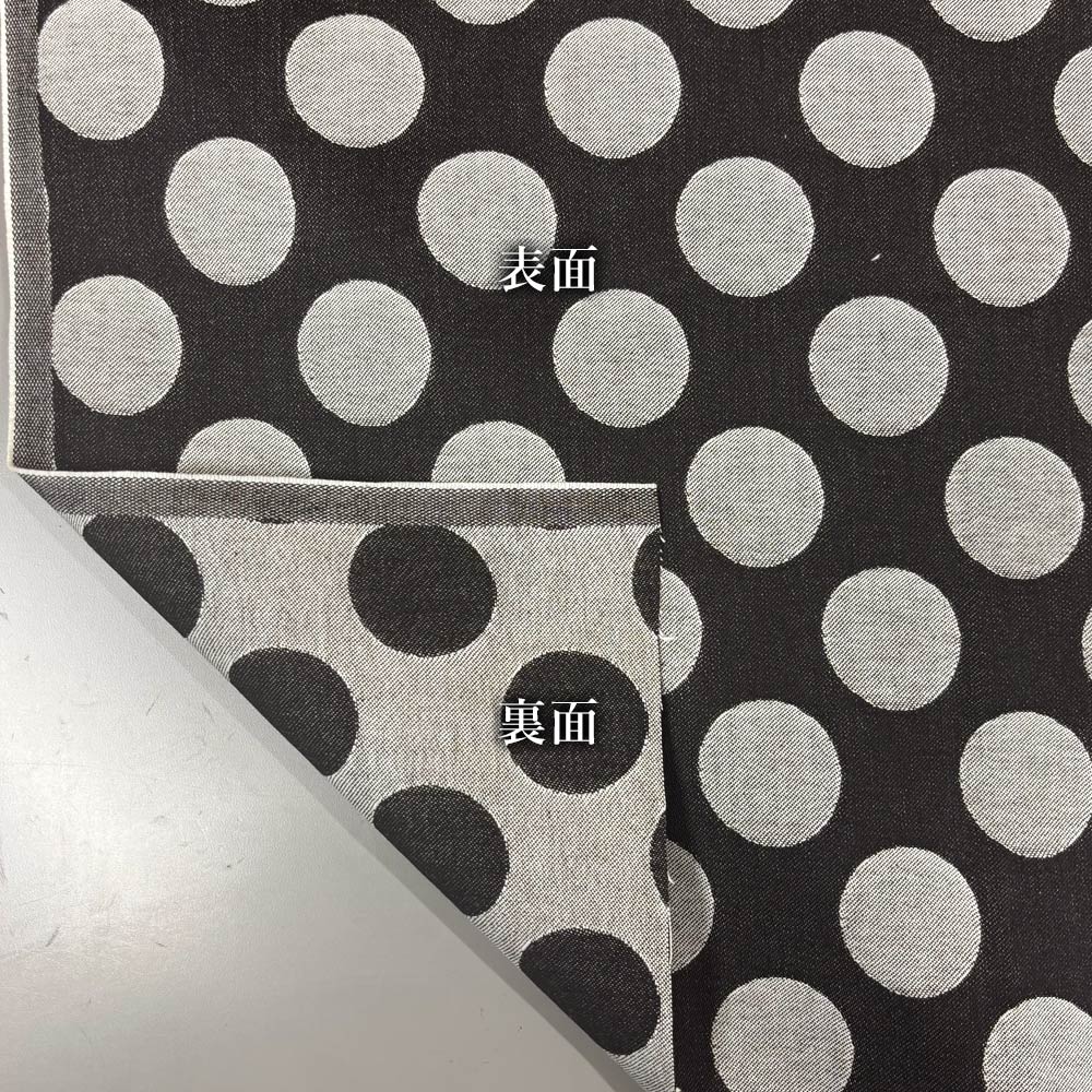 縦糸ブラックがベースで、横糸白の直径約4cmのドットが並んだデザイン。