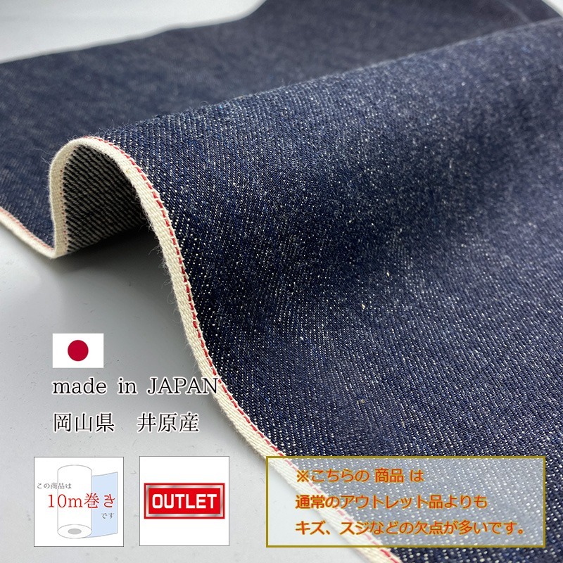 岡山デニム 10m巻 14oz セルビッチデニム 生機 キバタ アウトレット品 綿 コットン 100% デニム生地 岡山デニム ジーンズ