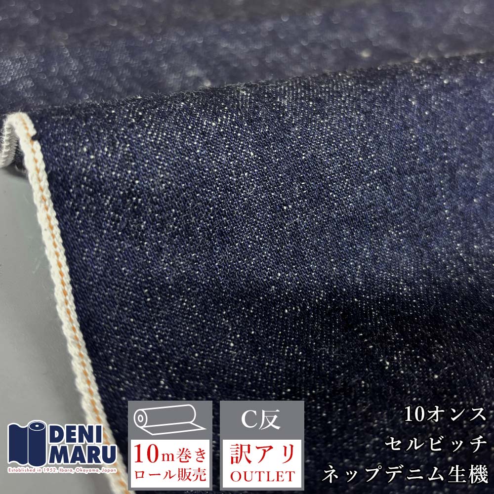 訳あり アウトレット デニム生地 セルビッチデニム 10m巻 10オンス インディゴ ネイビー オレンジ耳 ネップ アウトレット品 ジーンズ でに丸