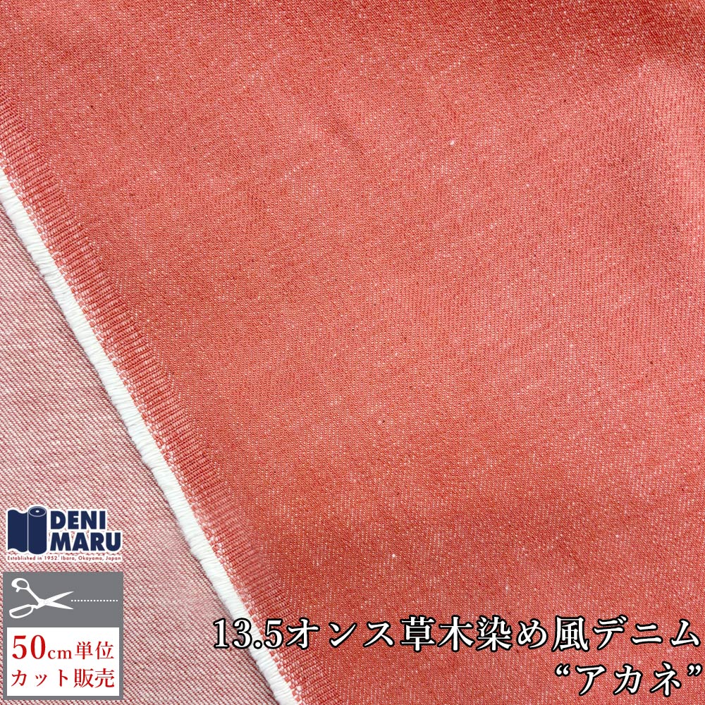 デニム生地 13.5オンス カラーデニム 草木染め風 天然染め風 アカネ 茜色 ピンク オレンジ ジーンズ 手芸 ハンドメイド 古着 ヴィンテージ 岡山 井原