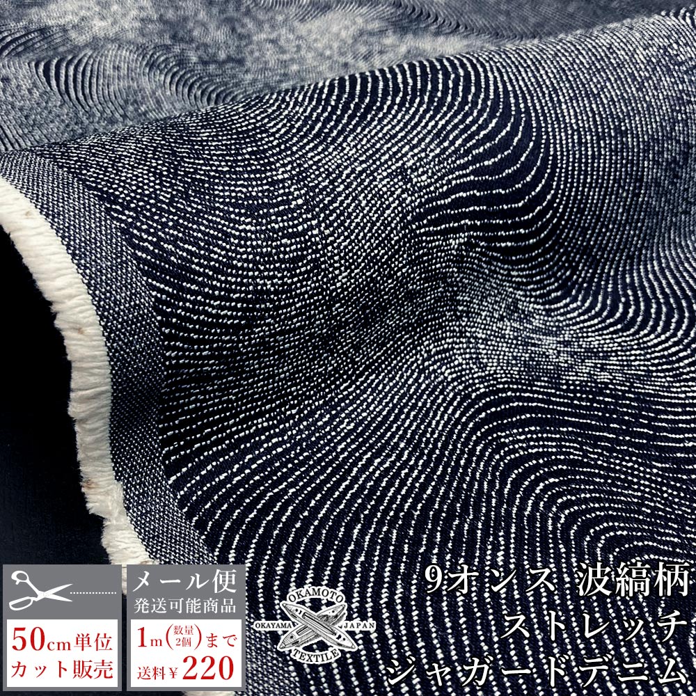 デニム生地 薄手 ストレッチ ジャガード織り 和柄 波縞模様 木目調 9オンス ジャガードデニム バッグ 日本製