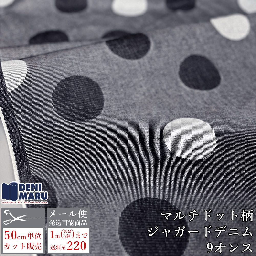 ジャガード 生地 デニム 薄手 ジャガード 9オンス ドット柄 水玉柄 レトロ 昭和 ヴィンテージ マルチドット柄ジャガードデニム ジーンズ スカート バッグ