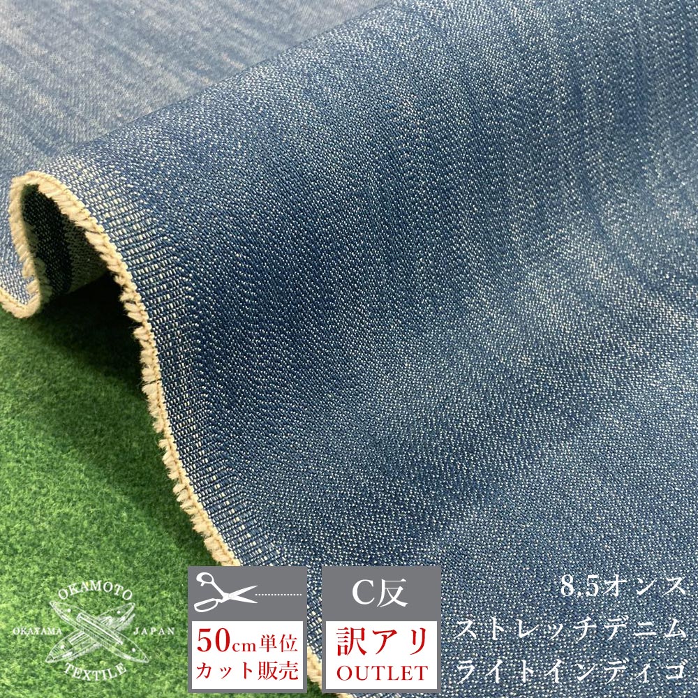訳あり アウトレット デニム 生地 ストレッチデニム 8.5オンス 布 日本製 岡山 国産 手芸 手作り ジーンズ エプロン バッグ でに丸