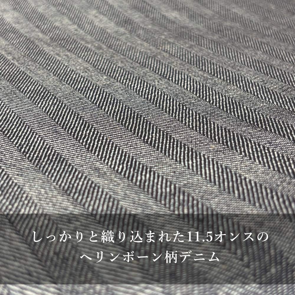 しっかりと織り込まれた11.5オンスのヘリンボーンデニム。