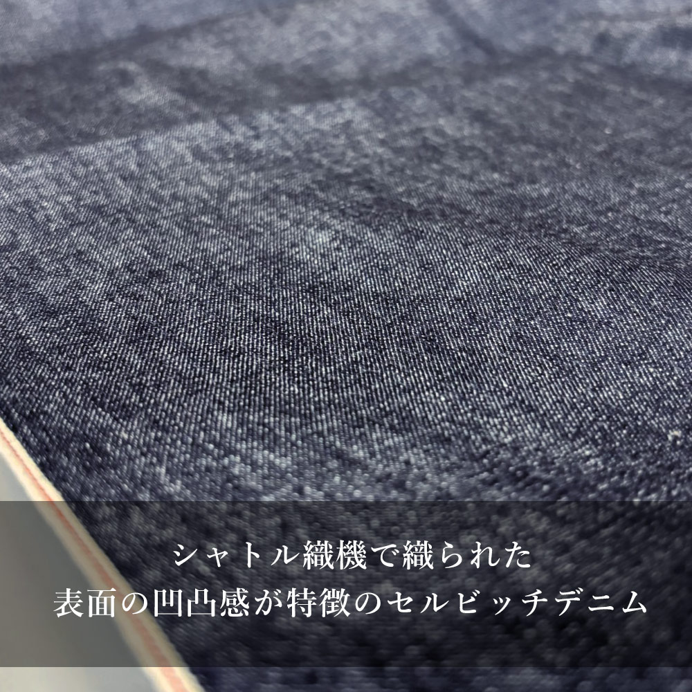 シャトル織機ならではの表面の凹凸感もあり、ヴィンテージライクなデニム生地。