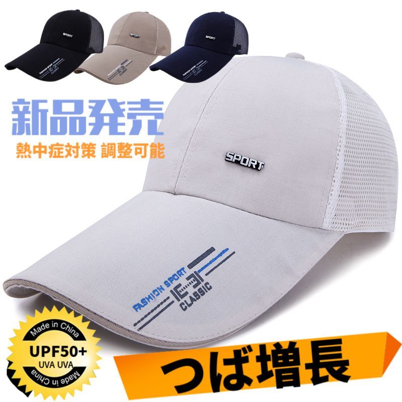 キャップ メンズ 帽子 つば長 メッシュ夏 野球帽 ロングバイザー UVカット 日よけキャップUVカット99%紫外線対策 日焼け防止 熱中症対策 調整可能 男女兼用