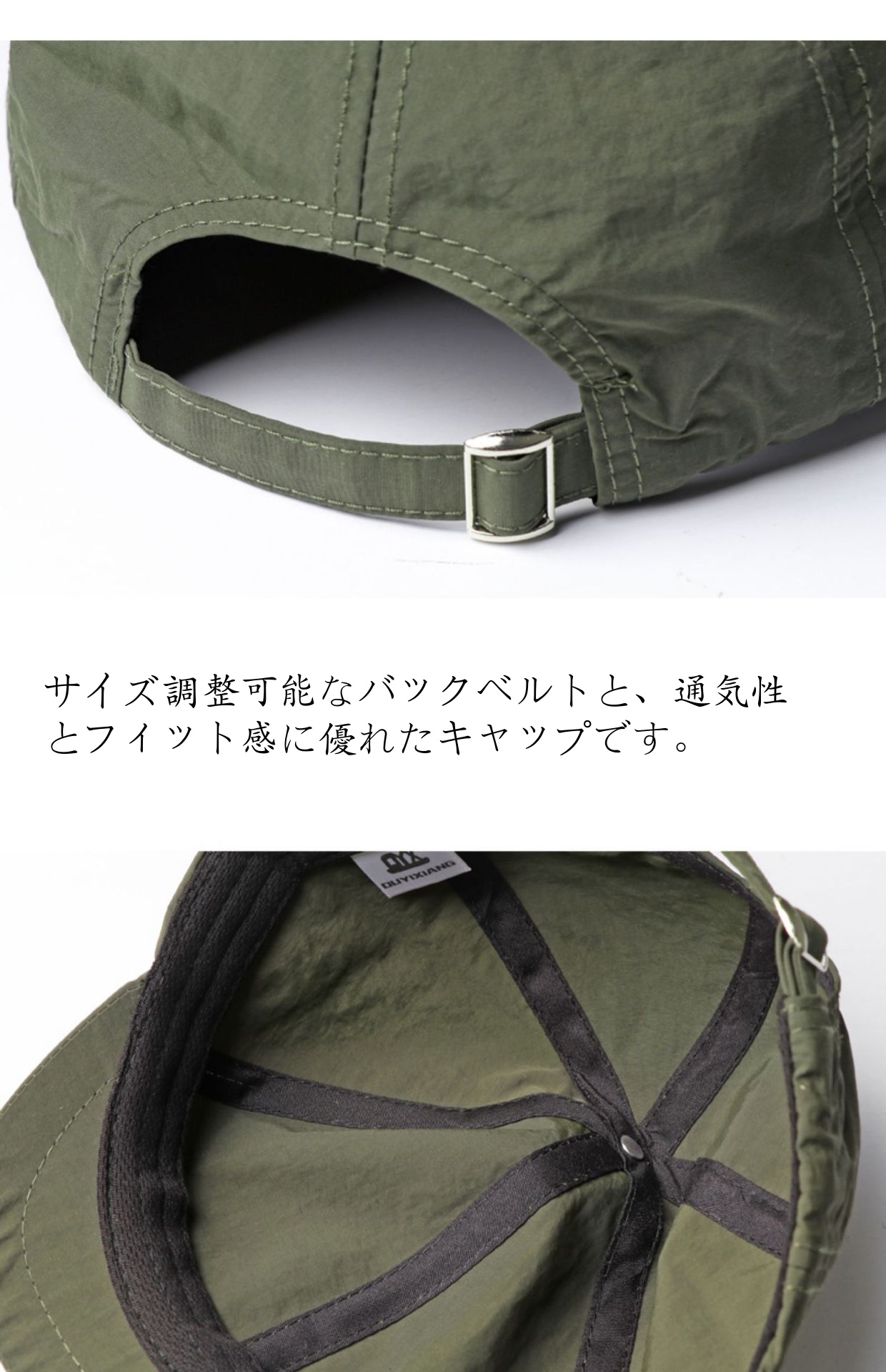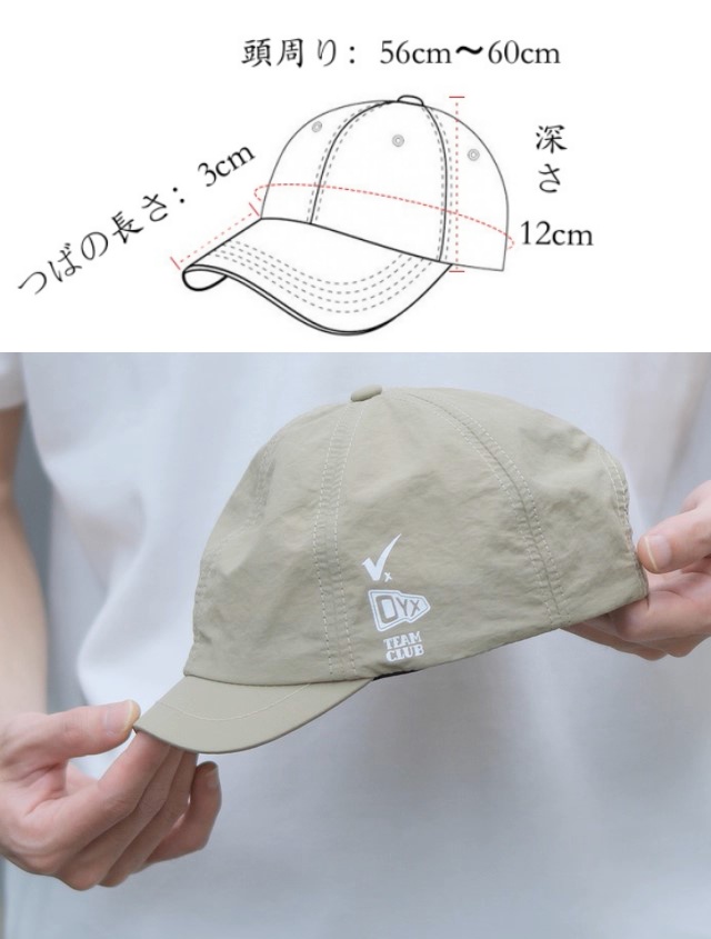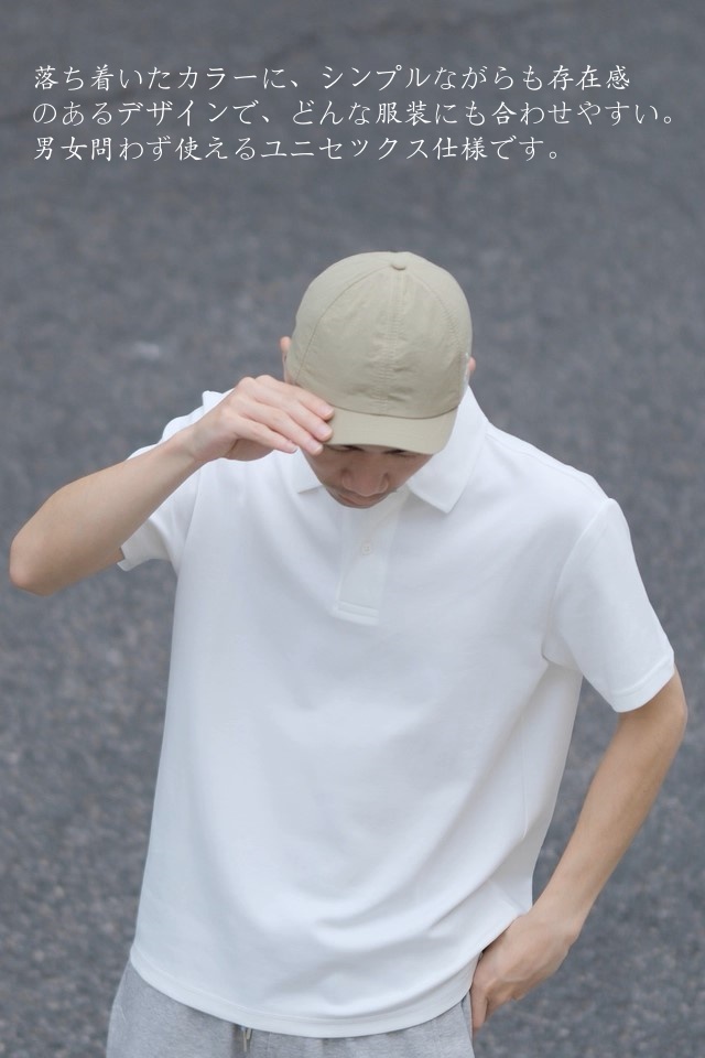色はどんな服装にも合わせやすいベージュカラーで、街でも自然でも映える万能キャップです。