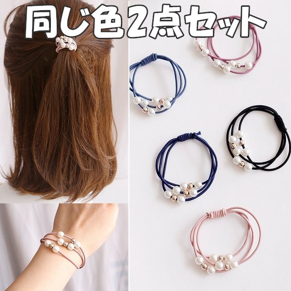 髪留めヘアゴム 3連 10色プレスレット ポイント消化 ビーズ 真珠 パール ヘアアクセサリー 大人かわいいパールデザインヘアゴム