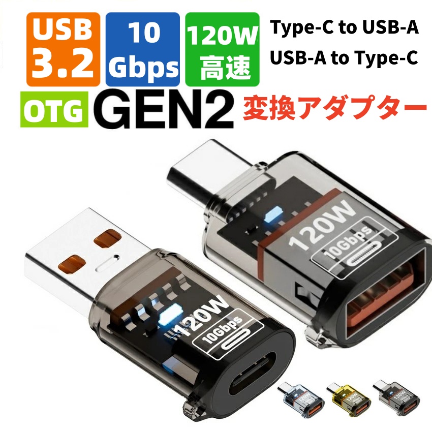 USB Type-C 変換アダプター 10Gbps 高速転送 120W急速充電 OTG対応 USB3.2 Gen2 TypeC to USB-A / USB-A to TypeC スマホ PC タブレット対応