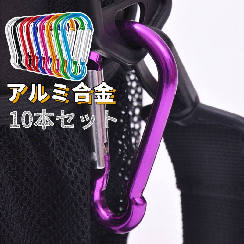 お得な10個セットの軽量アルミ製カラビナ。高強度で耐久性に優れ、持ち運びにも便利な高品質なカラビナです。
