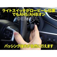 になります。ライトスイッチがロービーム/ハイビームどちらの位置にあっても、AHS/AHBスイッチがオンであれば機能がオンになります。