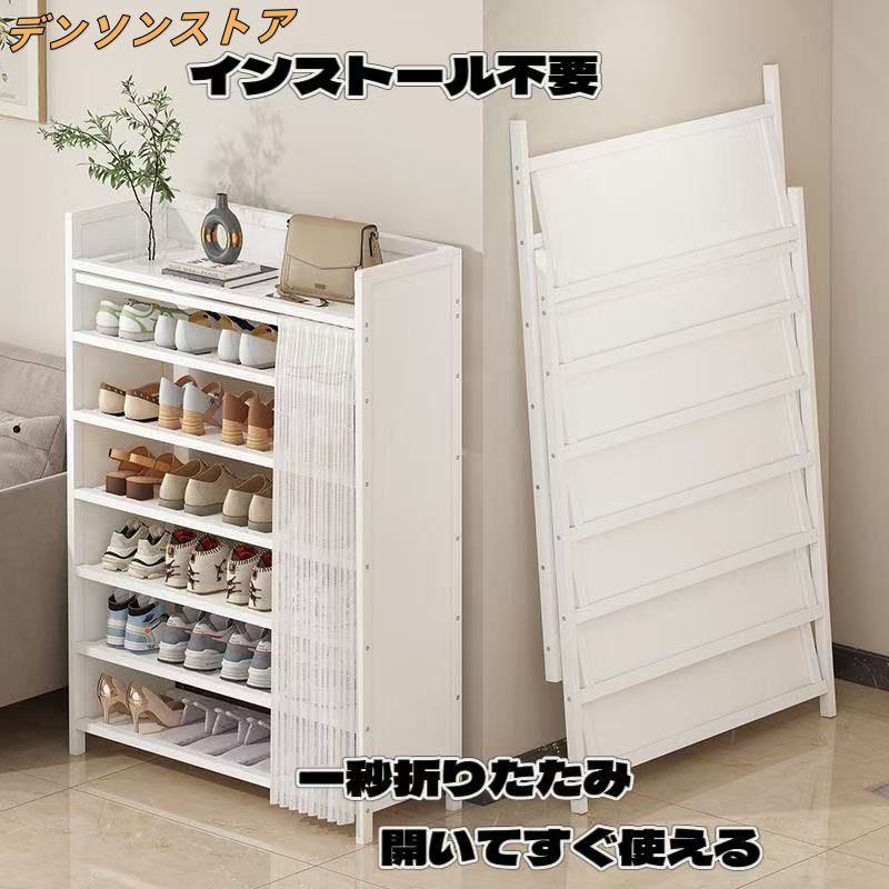 シューズラック 折りたたみ 4段 5段 6段 7段 下駄箱 スリム 靴棚 玄関に靴を効率収納 大容量 天然竹製 幅50/70/90cm 省スペース 防塵カーテン付き 靴収納