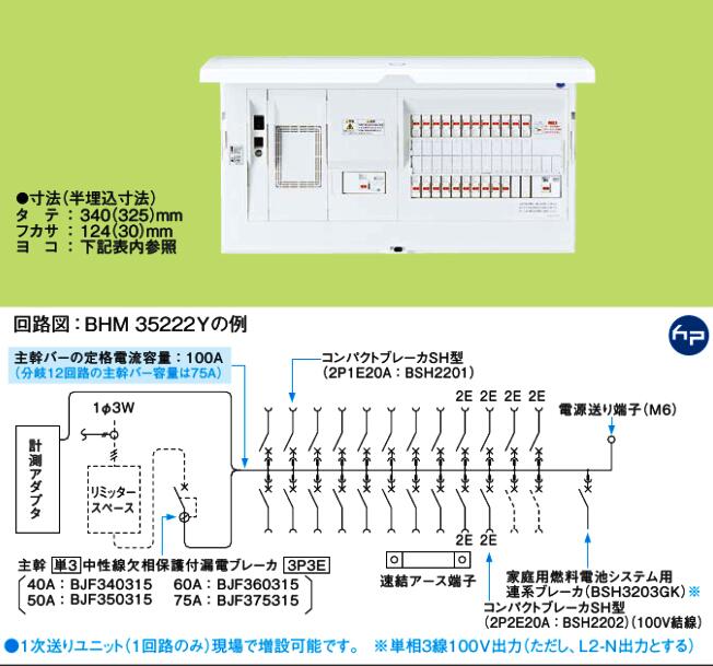 機器一覧 リミッタースペース付 ・ドア付 ・プラスチック製 ・露出・半埋込両用形 ・アース端子実装数:12(12回路は6) ・色名:ホワイトマンセル記号10Y9/0.5 注1)100V?200Vの切り替えは全回路可能です。 (200Vの場合、2P2Eブレーカをご使用ください) 注2)埋込形は対応できません。 注3)リミッタースペース付はリミッター電線を同梱しています。 注4)盤定格電流を超える主幹ブレーカは取り付けないでください。 注5)引込口開閉器が別途必要になります。 注6)引込口開閉器搭載タイプも9オーダーで対応いたします。別途、お問い合わせください。 注7)上記回路数とは別に、家庭用燃料電池システム用連系ブレーカ20Aを搭載しています。 注8)有線接続の場合は、LANケーブルとHUBが別途必要です。