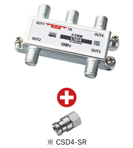 サン電子 CSD4-SR 4K8K衛星放送対応 4分配器 1端子電通過型 すご楽コネクタ付属