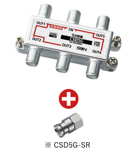 サン電子 CSD5G-SR 4K8K衛星放送対応 5分配器 全端子電通過型 すご楽コネクタ付属
