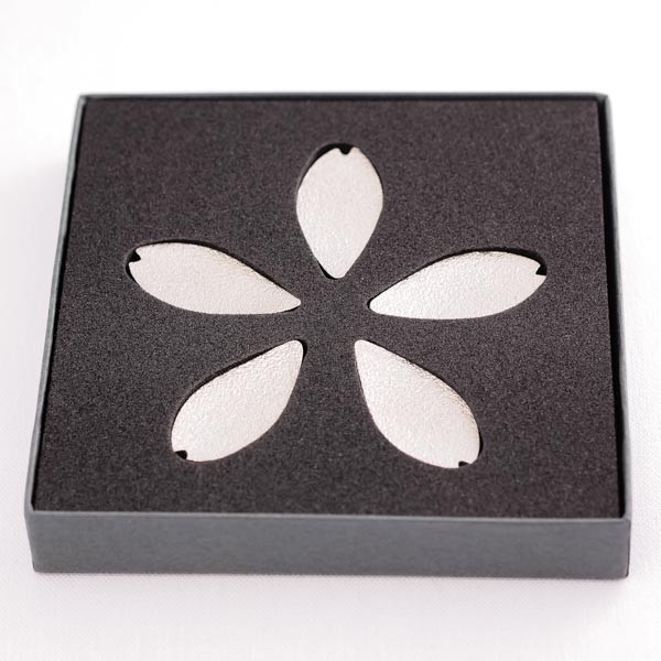 桜の花びらをデザインした錫100%の箸置き。錫は抗菌作用があり、食器として安心してお使いいただけます。鋳物ならではの鋳肌の風合いと、桜の日本的で美しい風情が食卓を華やかにしてくれます。おもてなしや贈り物などにもおすすめです。