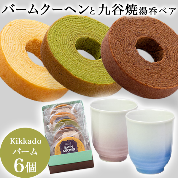 夫婦湯呑 耀釉彩 ペア kikkado バームクーヘン 6個セット ギフトボックス入り ( 耀釉彩 ギフト スイーツ 組湯呑 ペア湯呑 人気 プレゼント おすすめ セット )