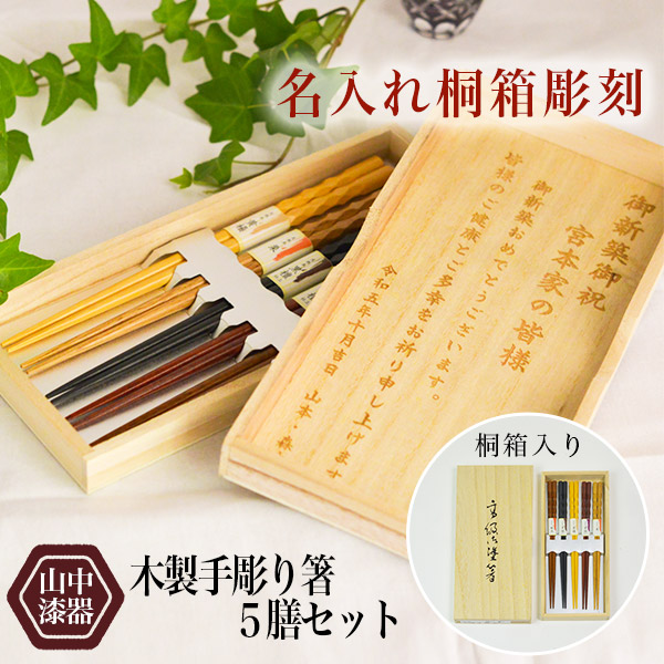 【山中漆器】 木製手彫り箸セット 名入れ彫刻無料 桐箱入り