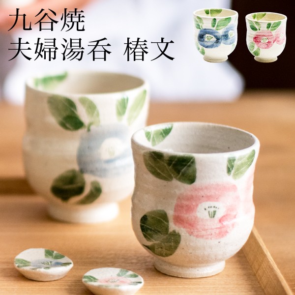 九谷焼 夫婦湯呑 椿文 ペア ( 夫婦湯呑 湯呑み ペア 陶器 ギフト セット プレゼント セット 九谷焼 結婚 出産 内祝い 引き出物 金婚式 誕生日プレゼント )
