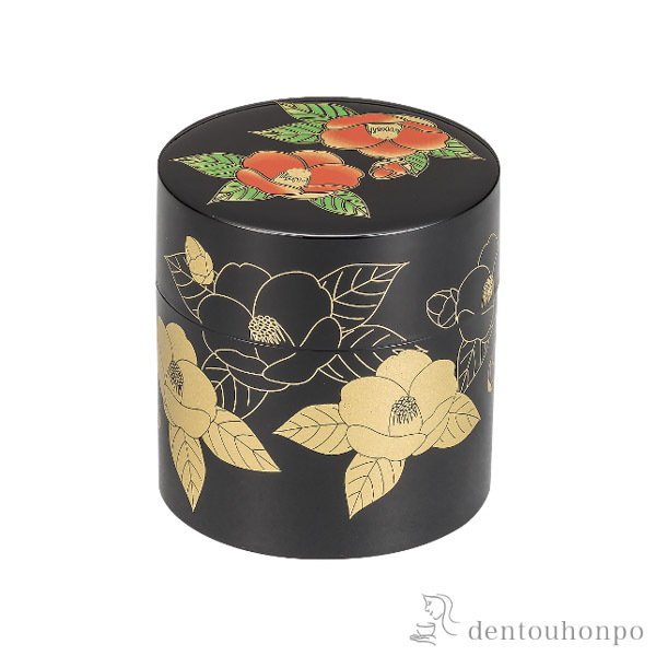 茶筒 つばき/黒 中蓋 ( 名入れ有料 茶道 茶入れ 日本茶 中国茶 おすすめ 山中漆器 結婚 出産 内祝い 引き出物 金婚式 誕生日プレゼント 還暦祝い 古希 )