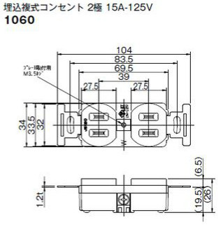 神保電器 1060-B 埋込ダブルコンセント 2極 15A-125V 黒色