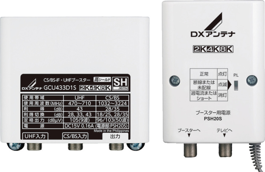 DX GCU433D1S CS/BS UHFブースター 【4K.8K対応】 33dB〜43dB対応