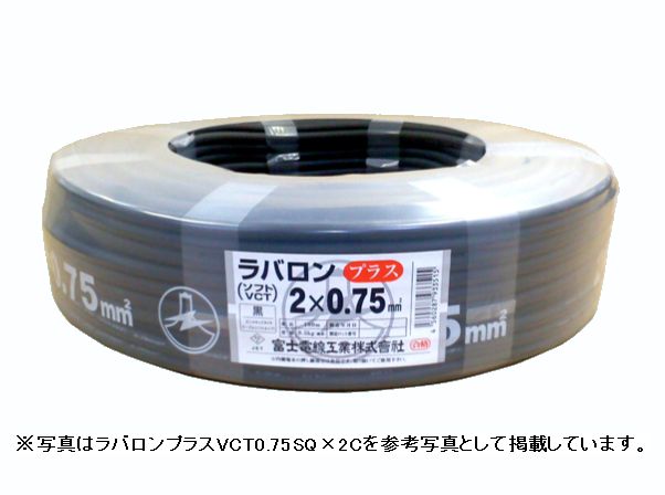 富士電線 600V ラバロンプラスVCT 2SQx2C 100m巻 耐熱ソフトビニルキャブタイヤケーブル 2mm2 2芯 インボイス領収書可能