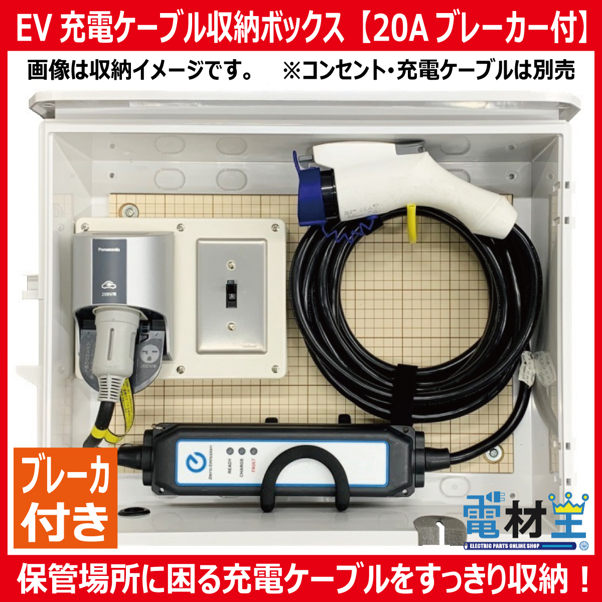 EV PHEV 充電ケーブル 収納ボックス ブレーカー付 D-EVBOX54A-B 電材王 電気自動車