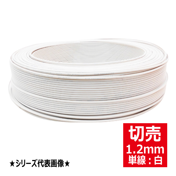 600Vビニル絶縁電線(単線)IV1.2mm白の切売商品です。価格はm単価となります。