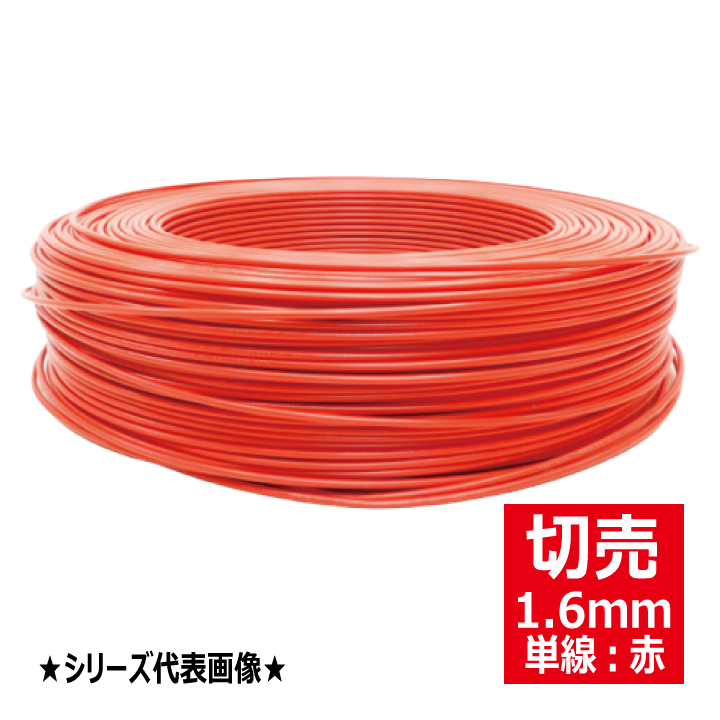 切売 IV 1.6mm赤 600Vビニル絶縁電線 単線 赤色 住電日立ケーブル