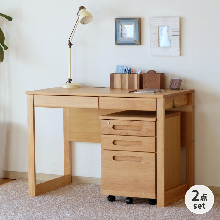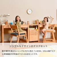 オススメ アルダー無垢材を使用した木の温もりを感じることができるL-DESKシリーズの105cm幅デスクと、昇降機能・キャスター付きワゴンの2点セットです。 デスクの両サイドには、カバンなど掛けておくのに便利なフック付き。また、デスクの向かって左側には、埃が入りにくいスライド式の2口コンセントが付いています。ワゴンは、天板の高さを59.3cm-74.7cm(9段階)で調節が可能です。また、キャスター付きなので、移動させやすいのも嬉しいポイント。デスクの引き出し(左)には、A3サイズが。(右)にはA4サイズをゆったりと収納させることが出来ます。