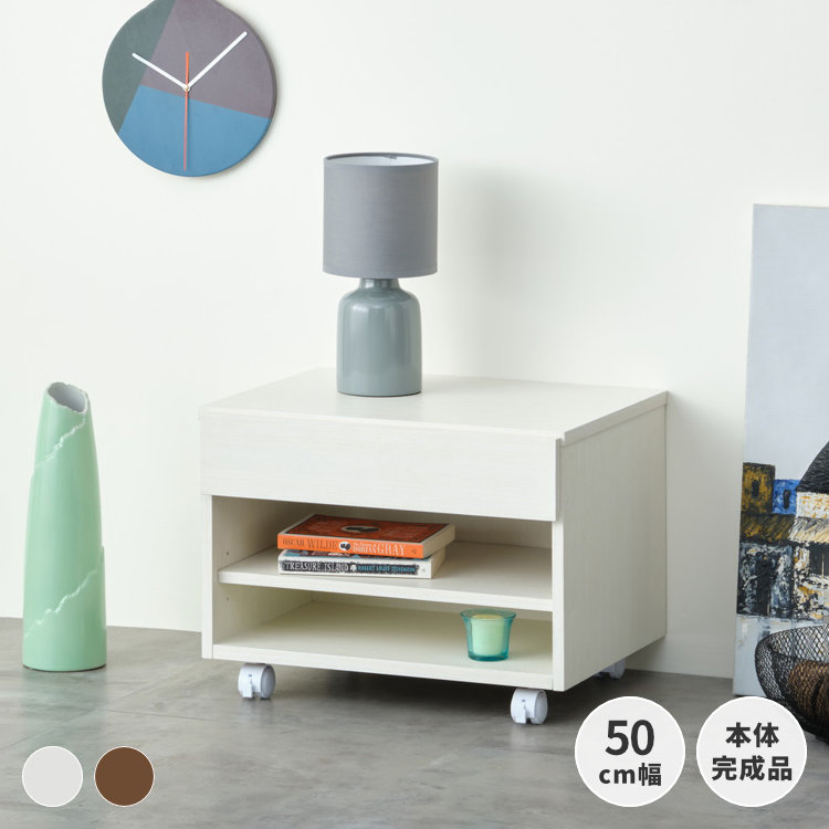 オススメ 小回り効くコンパクトなサイズ感で、使いたい時に使いたいシーンにフレキシブルに対応してくれるキャスター付きプリンターカート。プリンター使用時に欠かせないアイテムの収納に便利な引出し収納と可動棚付きのオープンスペースで快適にお使いいただけます。ホワイトとミディアムブラウンの選べる2色。お好みのスタイルでお選びいただけます。