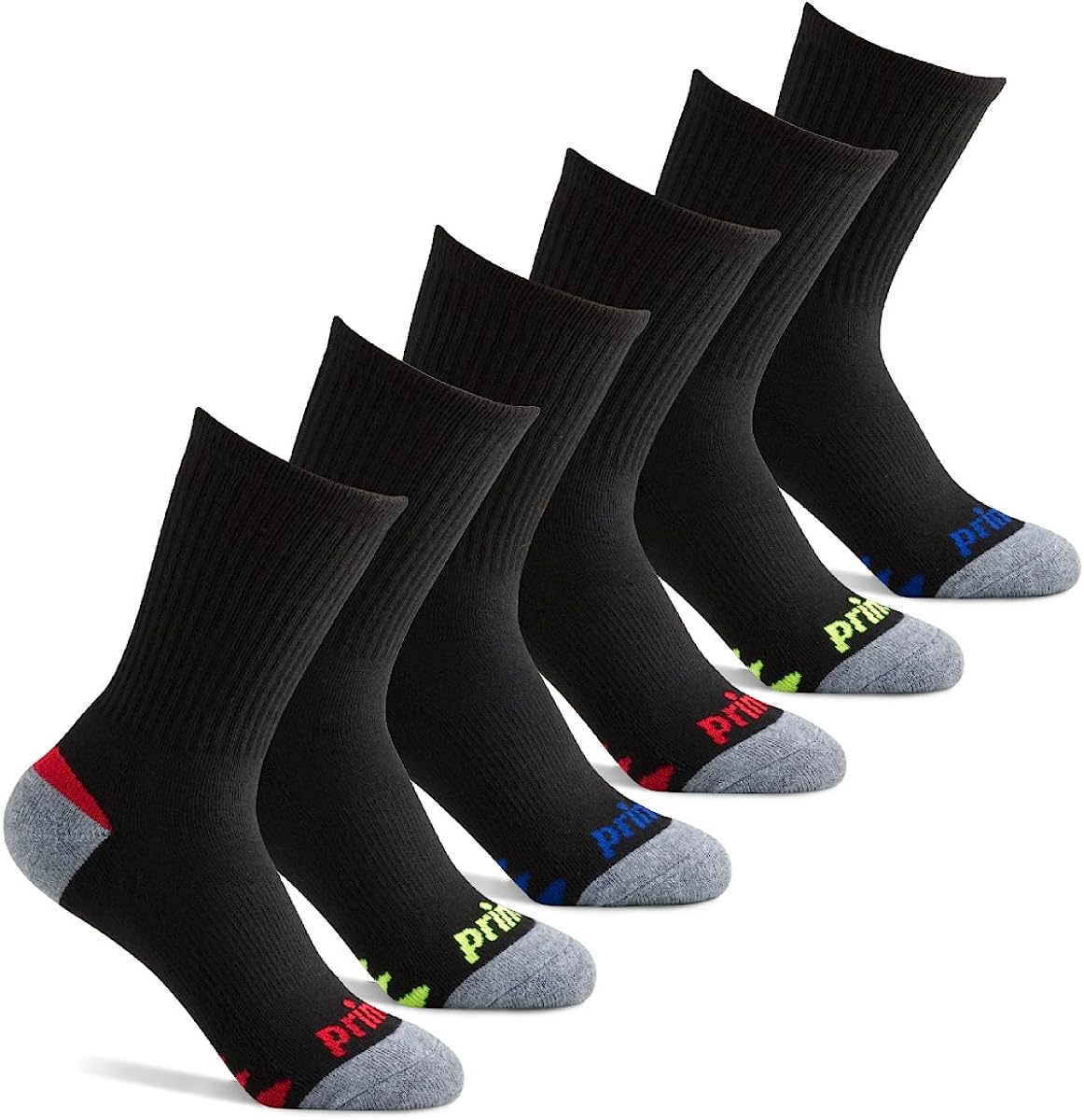 Prince Boys' Crew Length Athletic Socks with Cushion for Active Kids (6 Pair Pack)