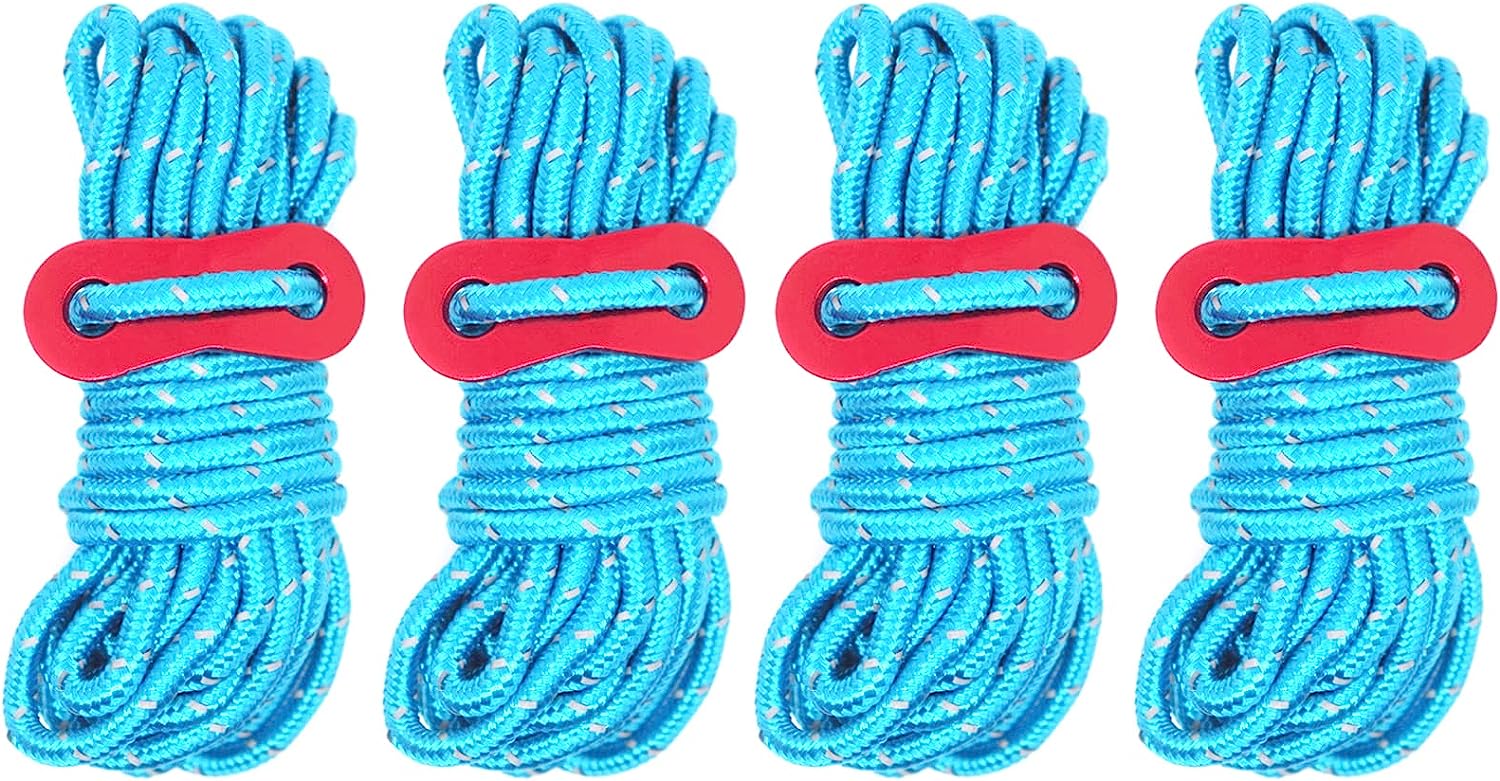 LIDA ORO Guy Lines Tent Cords,4mm Lightweight Camping Ropes with Aluminum Guylines Adjuster for Tent Tarp,Canopy Shelter,Camping,Hiking,Backpacking(Blue,4 pcs)