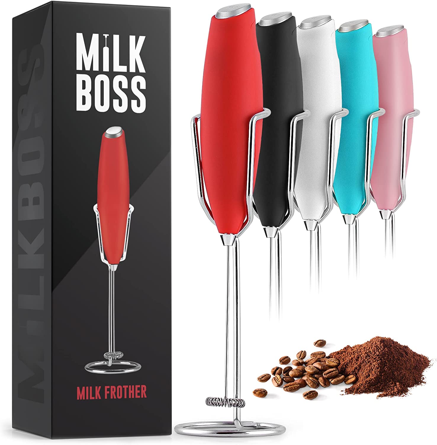 商品名Milk Boss Powerful Milk Frother Handheld With Upgraded Holster Stand - Coffee Frother Electric Handheld Foam Maker - Milk Frother For Coffee, Lattes, Matcha & More - Electric Whisk Frother (Red)