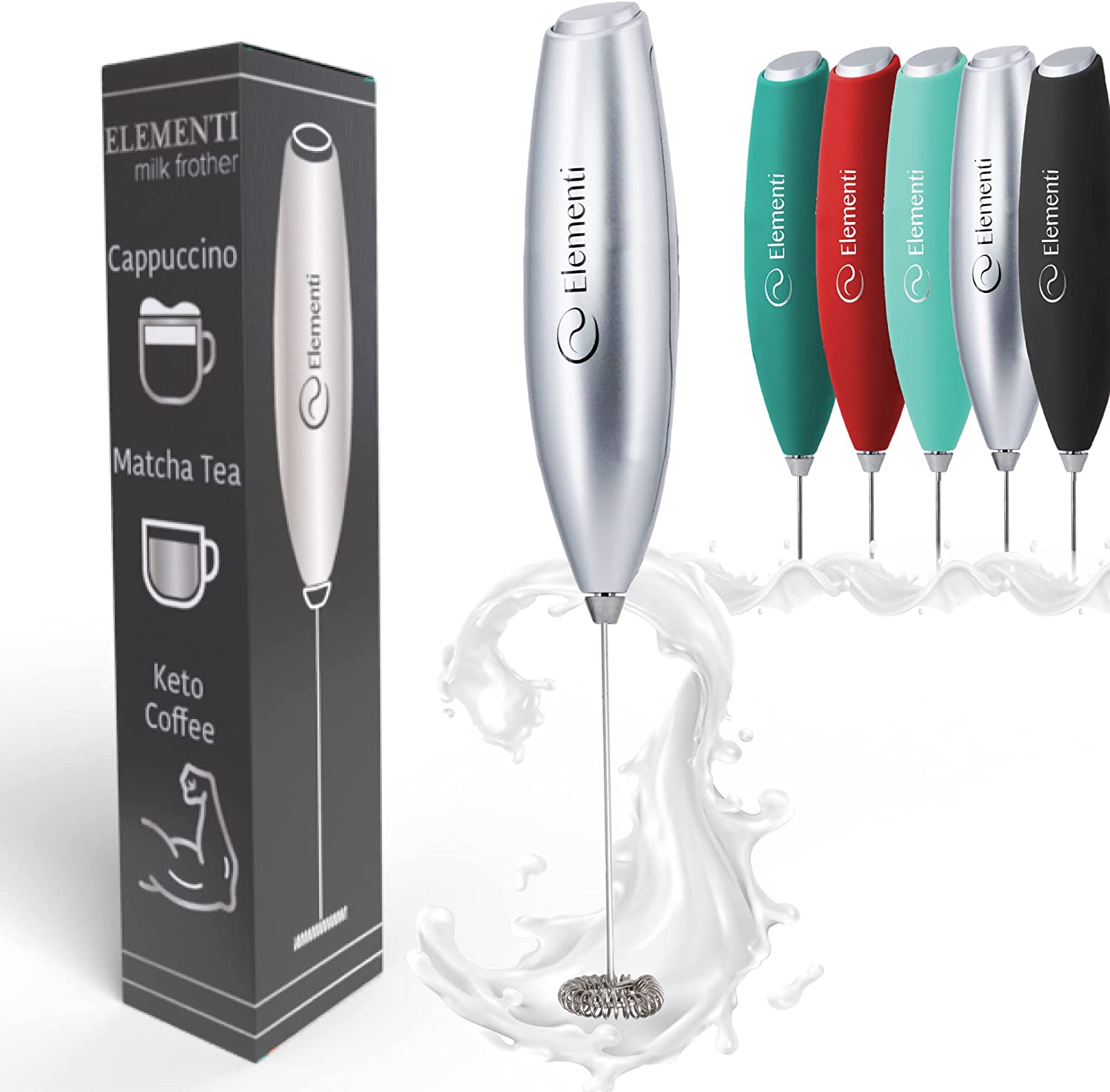 Elementi Milk Frother Handheld Matcha Whisk (Silver), Electric Hand Coffee Mixer, Electric Coffee Stirrer, Hand Held Blender Stick, Coffee Frother for Latte Cappuccino Frappe Maker, Mini Drink Mixer