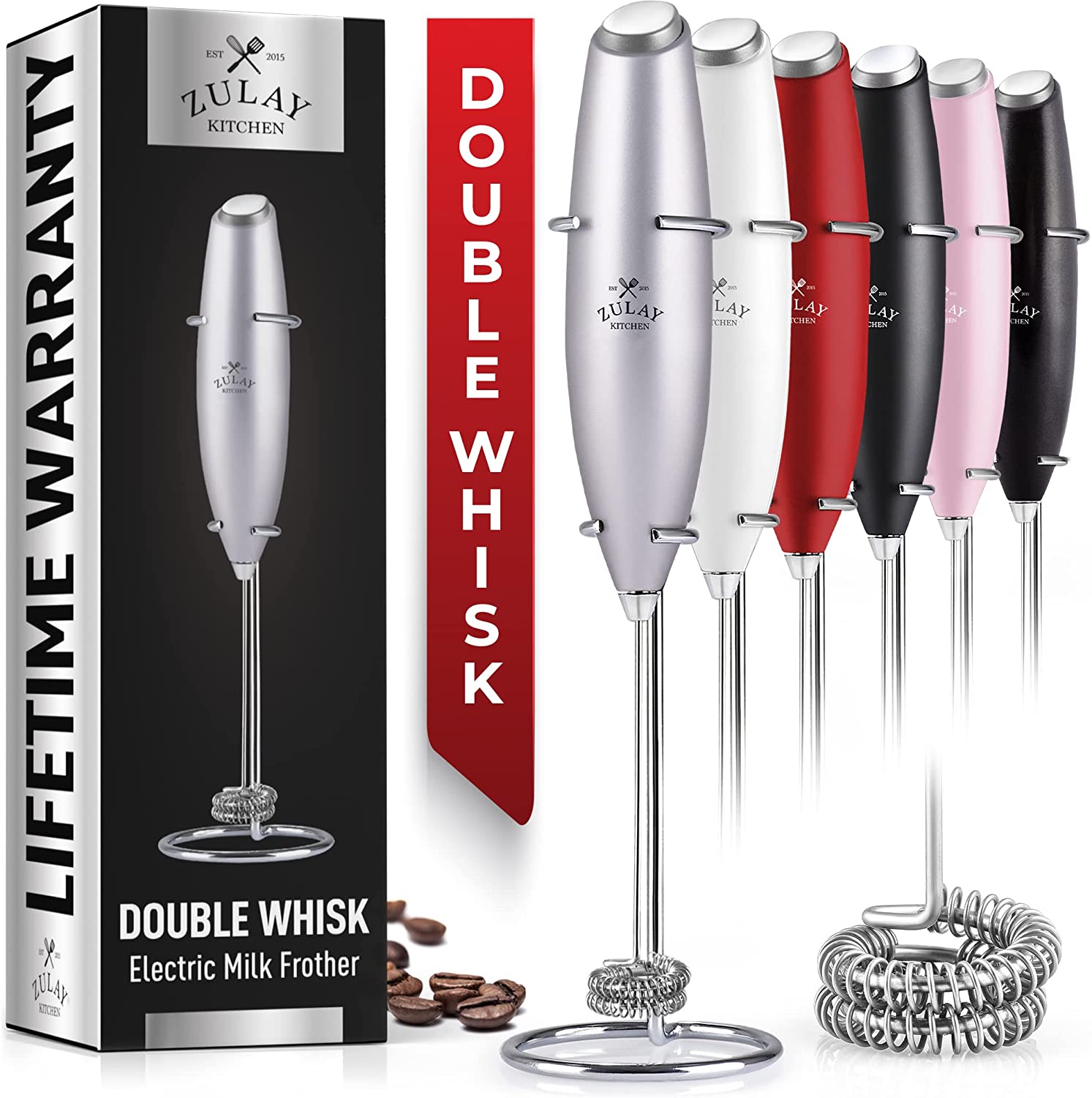 商品名Zulay Double Whisk Milk Frother Handheld Mixer - High Powered Frother For Coffee With Improved Motor - Electric Whisk Drink Mixer For Cappuccino, Frappe, Matcha & More, Twin Whisk (Silver)