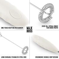 商品名Milk Boss Milk Frother for Coffee - Comfort Grip Matcha Whisk - Electric Matcha Mixer and Mixer Electric Handheld - Coffee Frother Handheld - Electric Drink Mixer With Batteries Included (White)