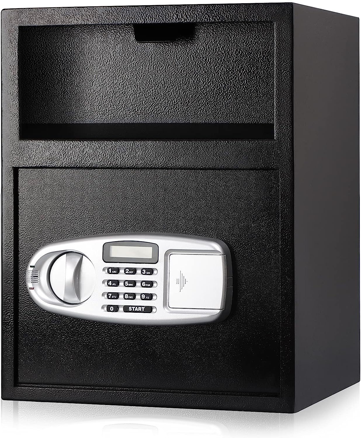 KYODOLED Digital Depository Safe Box, Electronic Steel Safe with Keypad, Locking Drop Box with Slot, Metal Lock Box with Two Emergency Keys for Your Valuables, 17.7'' X 13.8'' X 11.8'', Black