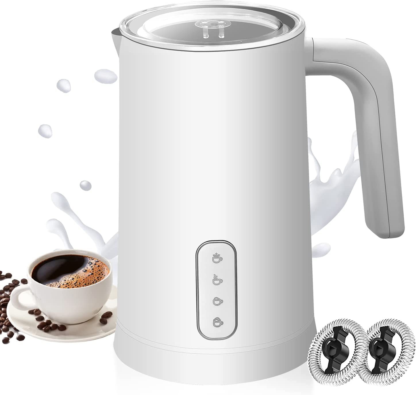 Milk Frother-Rocyis 4 in 1 Electric Milk Forther and Steamer-Coffee Frother, 8.4oz Hot/Cold Foam Maker, Automatic Milk Warmer Frother for Latte,Cappuccino,Hot Chocolate, House Warming Gift, White